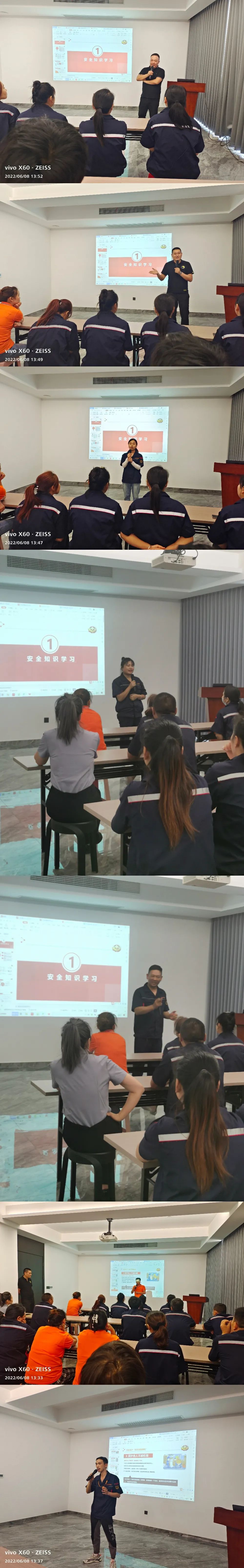 6月8日下午,公司在三樓會議室舉行了員工安全教育培訓大會。會議由行政部主持,全體員工參加了培訓。這次培訓的目的是為了提高員工的安全意識和安全操作技能,預防事故的發生,確保安全生產。